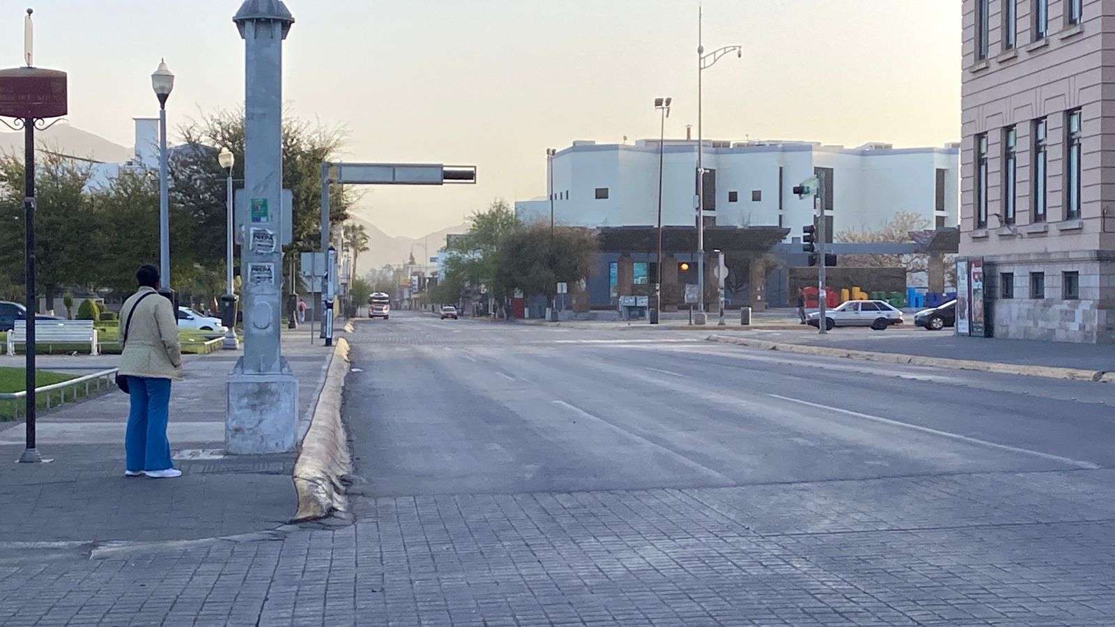 La avenida Juárez, Carranza y Aldama de la colonia centro, estuvieron con poco flujo vehícular y se pudo observar algunas personas en las calles transitando o esperando el camión.