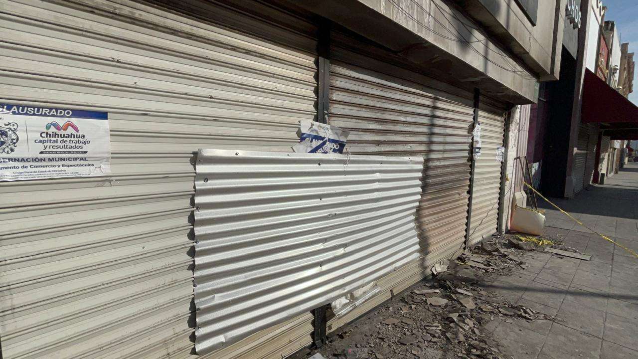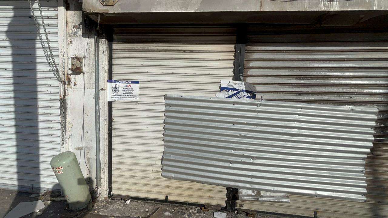 Chihuahua.- A casi una semana del siniestro que puso en jaque al primer cuadro de la ciudad, el establecimiento comercial Hualong, situado en la intersección de la calle Libertad y la avenida Tercera, mantiene sus cortinas cerradas y luce sellos de clausura oficial.