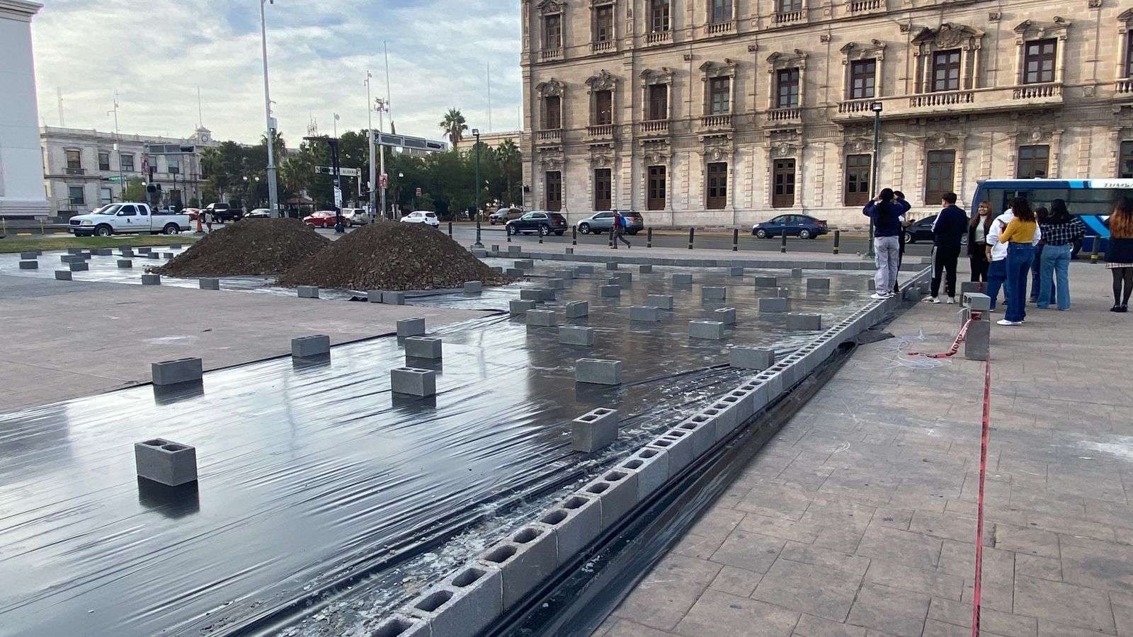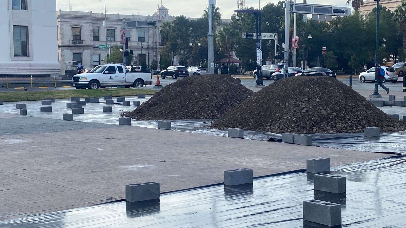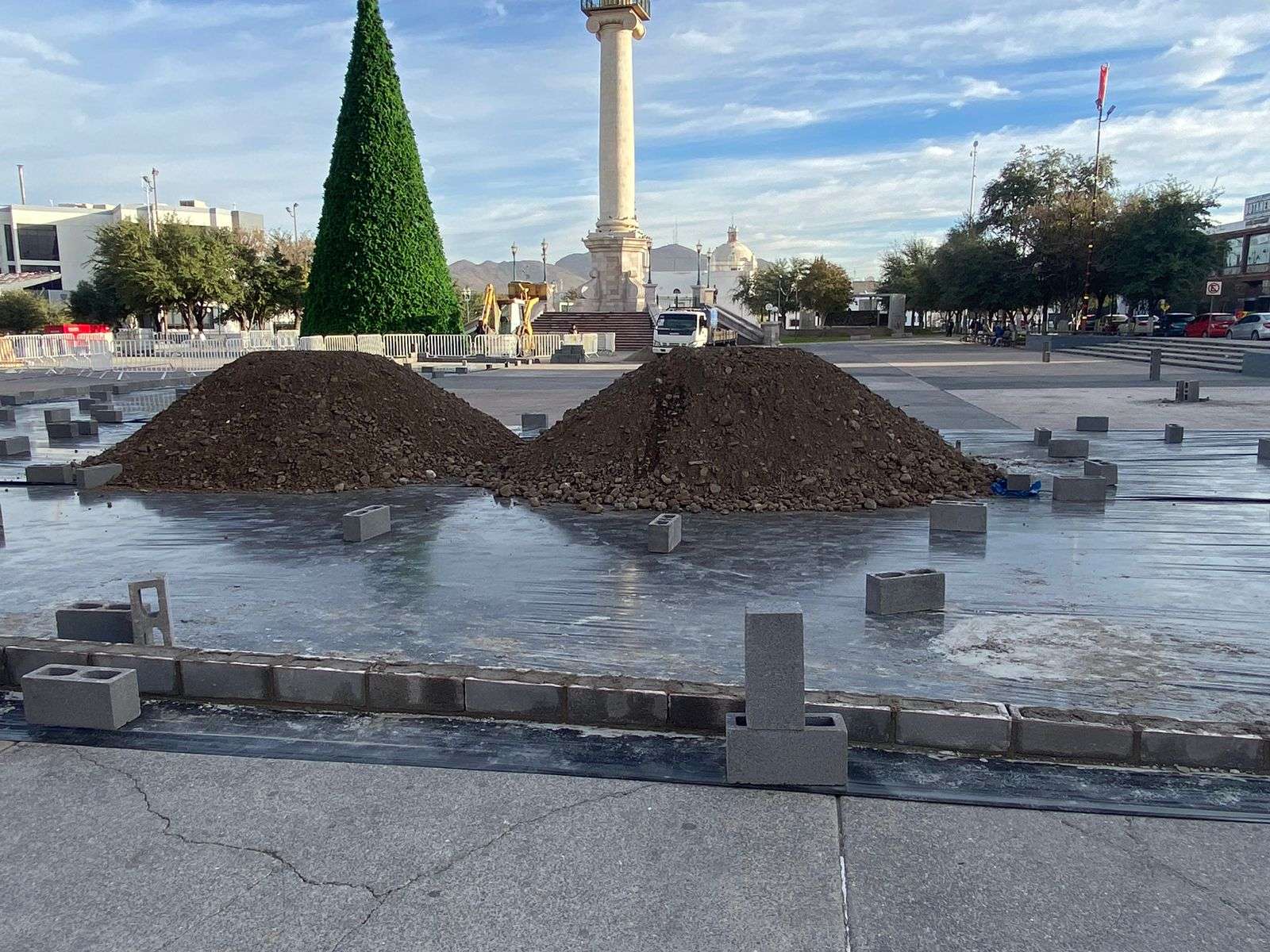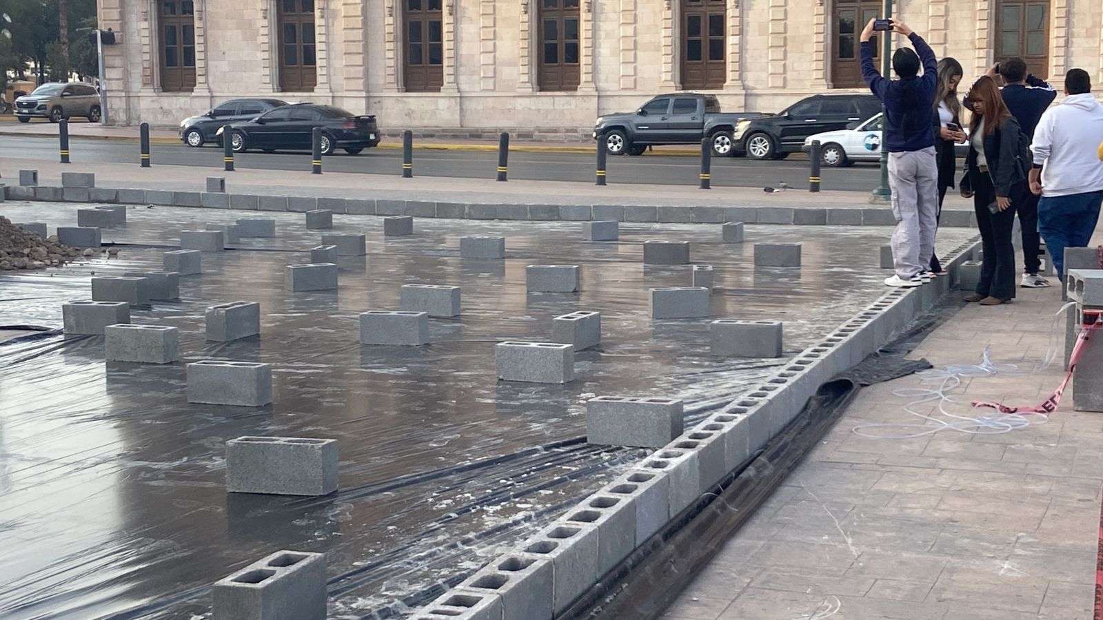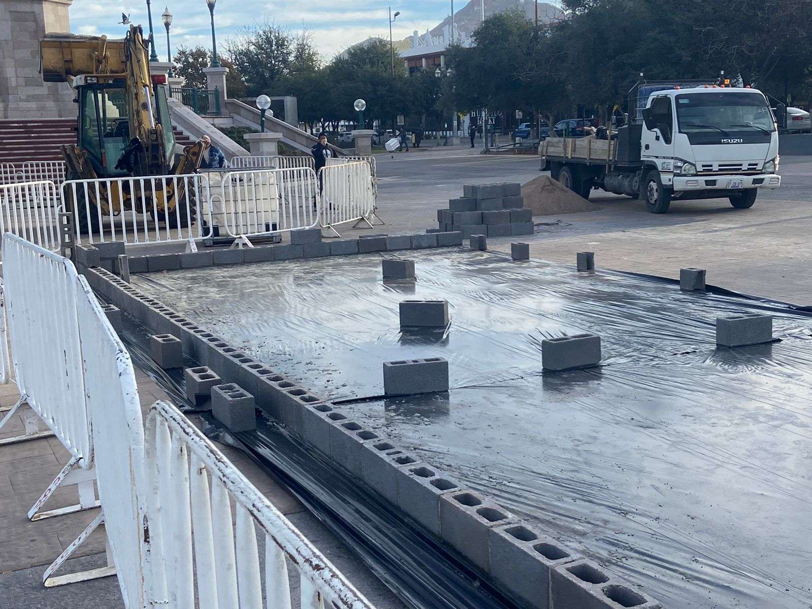 La cuadrilla de trabajadores ha comenzado con la colocación de la base que dará vida a la pista de hielo, la cual se instala año con año para las festividades navideñas.