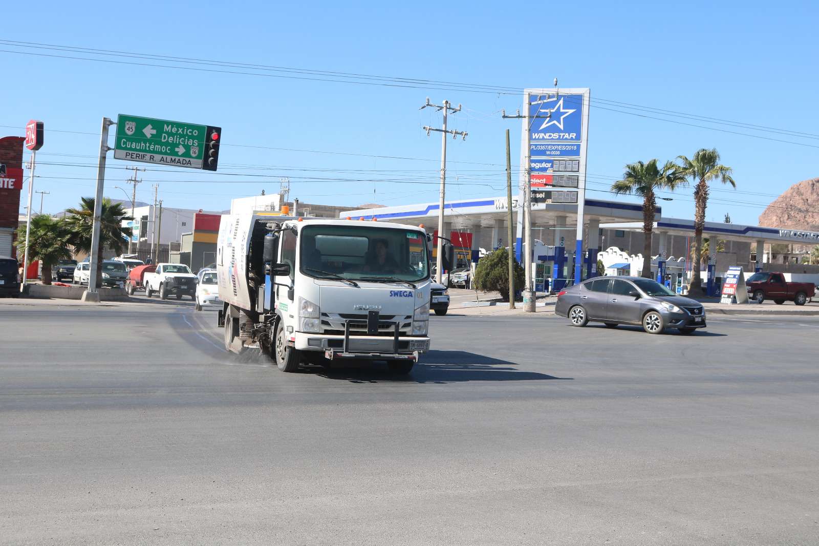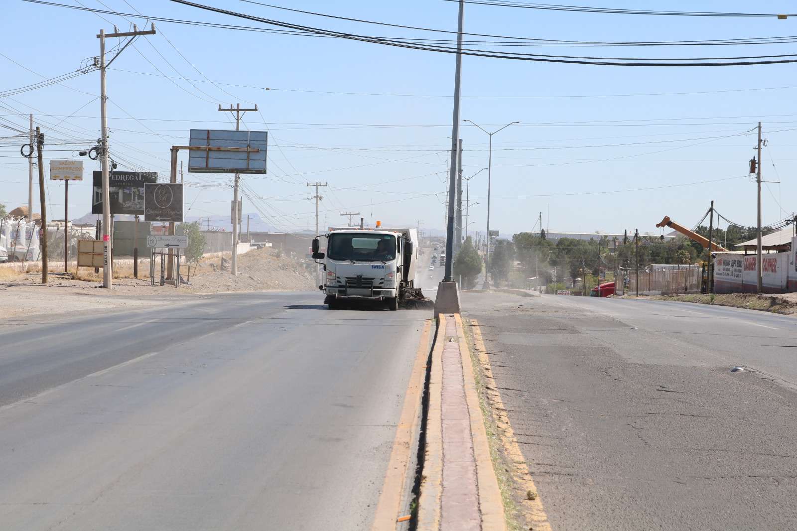 Chihuahua, Chih.- El Gobierno Municipal, a través de la Dirección de Servicios Públicos Municipales, trabaja de forma permanente en la limpieza de calles y avenidas con barrido mecanizado.