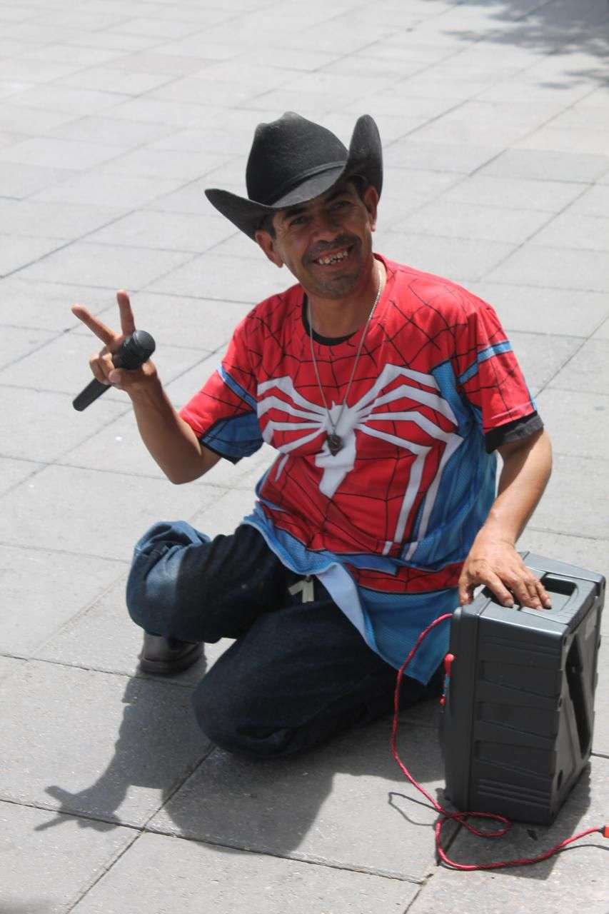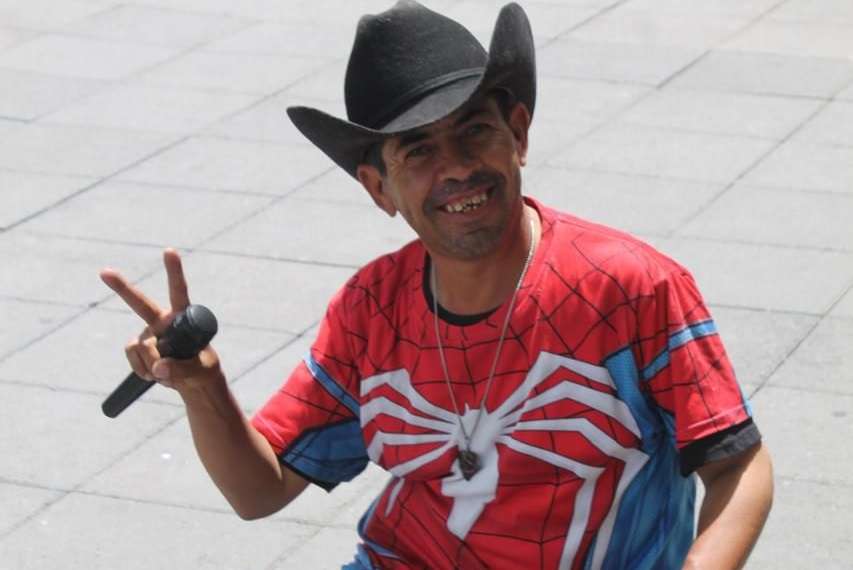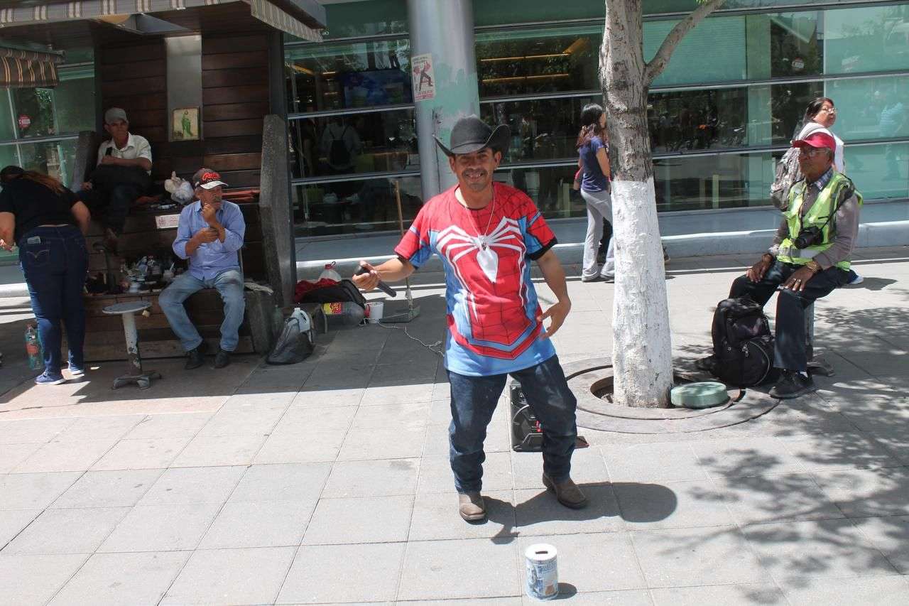 Su peculiar manera de trabajar ha generado simpatía y sonrisas, convirtiéndose en un personaje urbano que aporta color y alegría al entorno cotidiano.