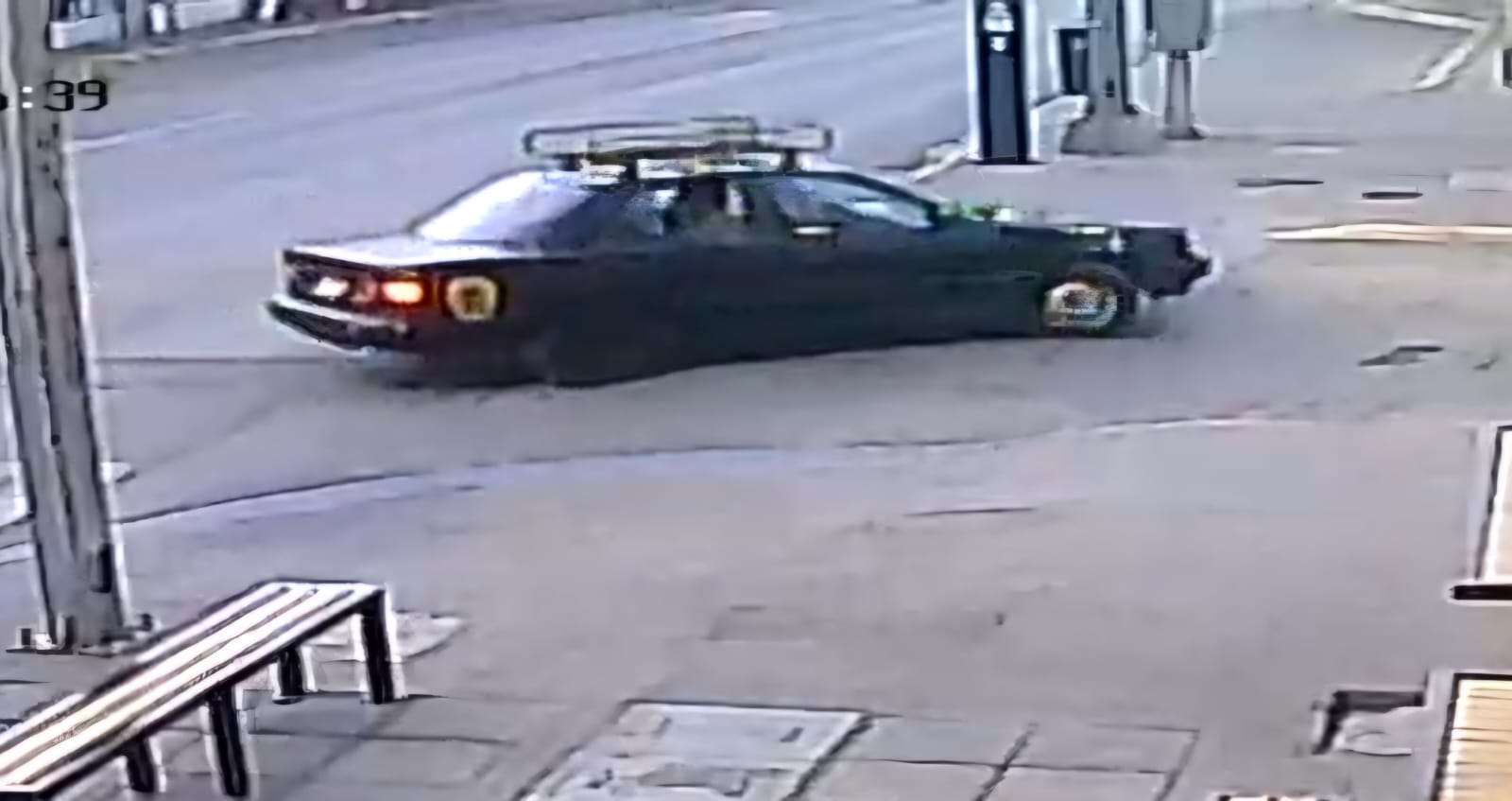 En una primera aparición, el copiloto desciende de la unidad para revisar la carga de la camioneta. Tras retirarse y pasar una segunda ocasión, es en una tercera vuelta cuando el chofer detiene el auto a un costado de la pick-up. El conductor, quien vestía sudadera y cachucha, baja del vehículo mientras que su acompañante llega a pie por la banqueta, vistiendo una chamarra oscura y también con cachucha.