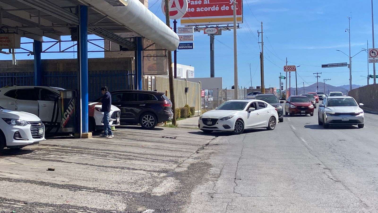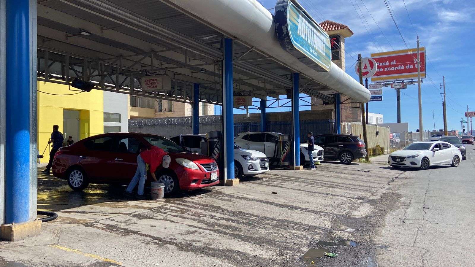 Chihuahua. - Los autolavados ubicados en el Periférico de la Juventud y la avenida de la Cantera registran una alta saturación de vehículos, con tiempos de espera que alcanzan hasta hora y media, generando largas filas y molestias entre los automovilistas.