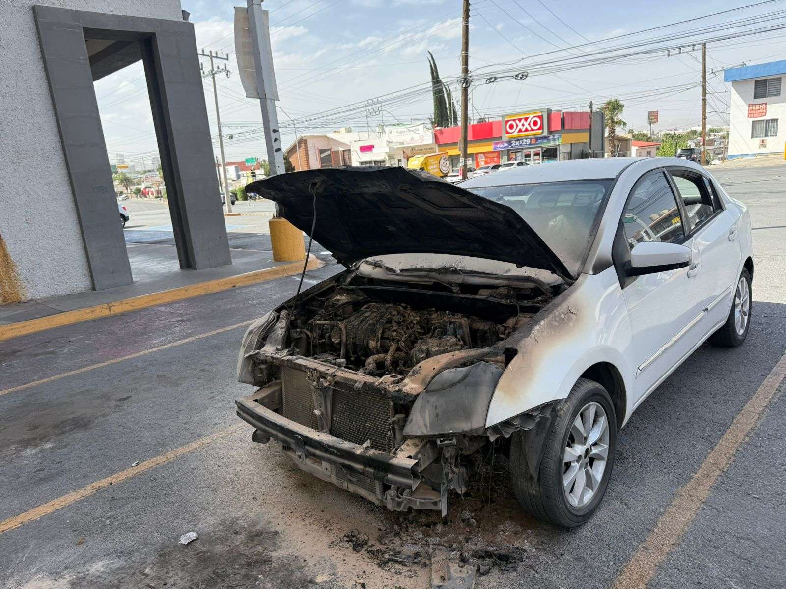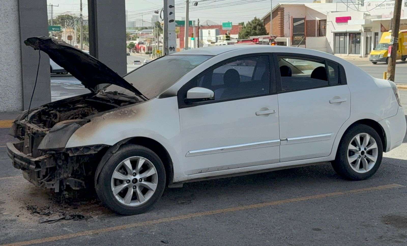 Chihuahua. - Un vehículo Nissan Sentra de color blanco se incendió la tarde de este día mientras se encontraba estacionado a un costado de las oficinas de Recaudación de Rentas, ubicadas sobre la avenida Mirador, entre las calles Tennessee y Sidney.