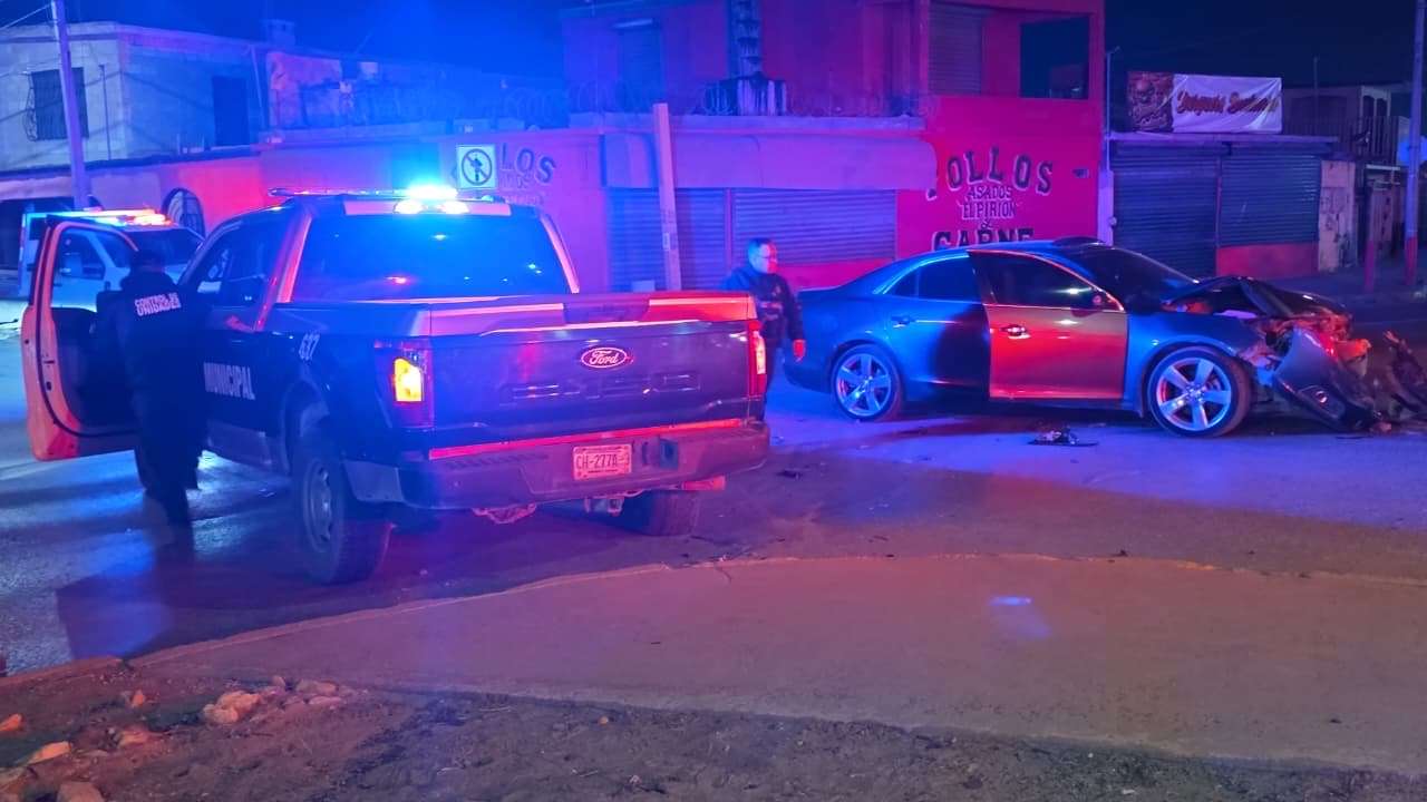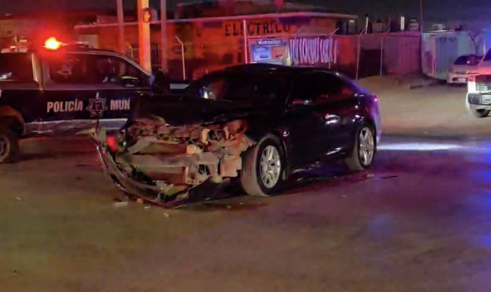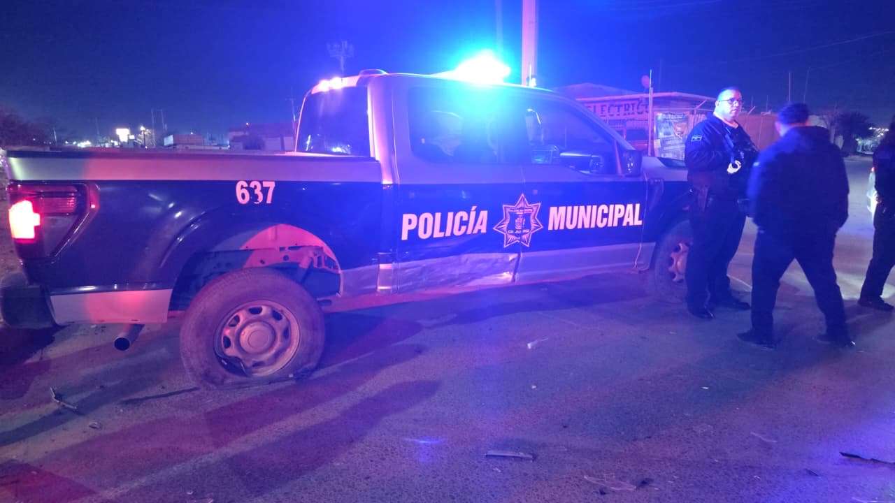 Ciudad Juárez.- Agentes de la Secretaría de Seguridad Pública Municipal se vieron involucrados en un accidente vial con un vehículo particular en el cruce de la calle Leona Vicario y bulevar Zaragoza.