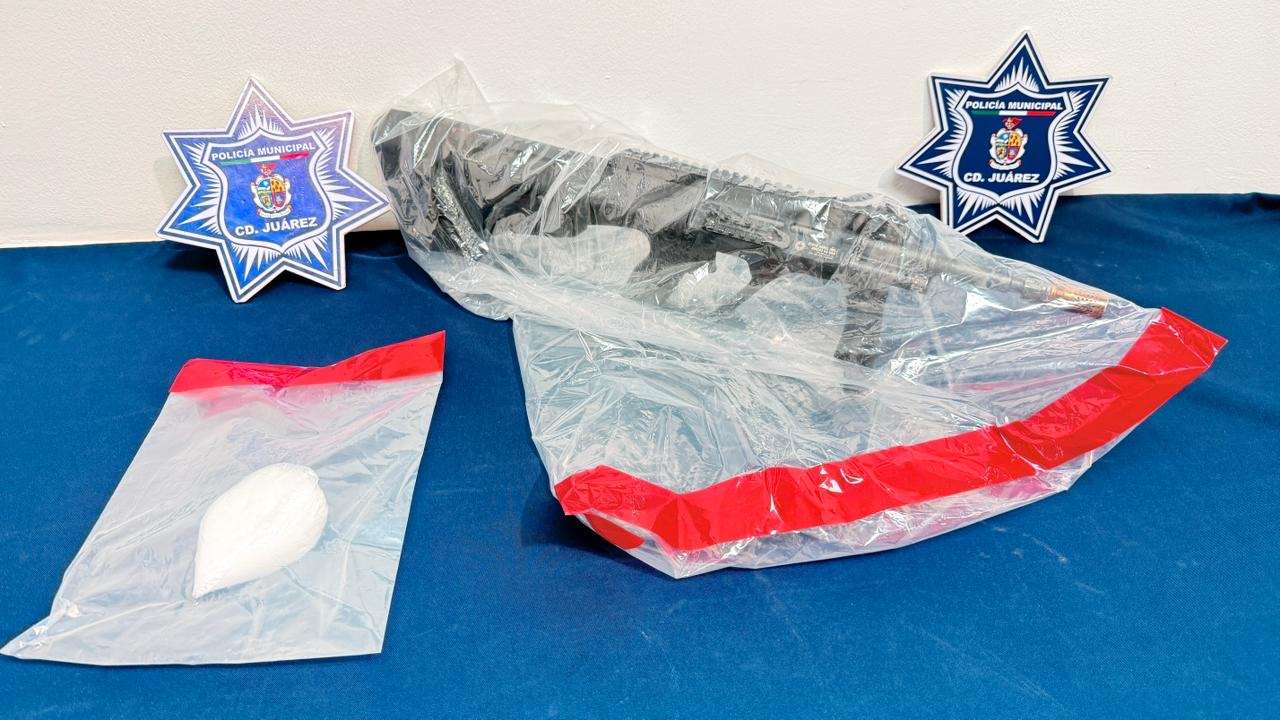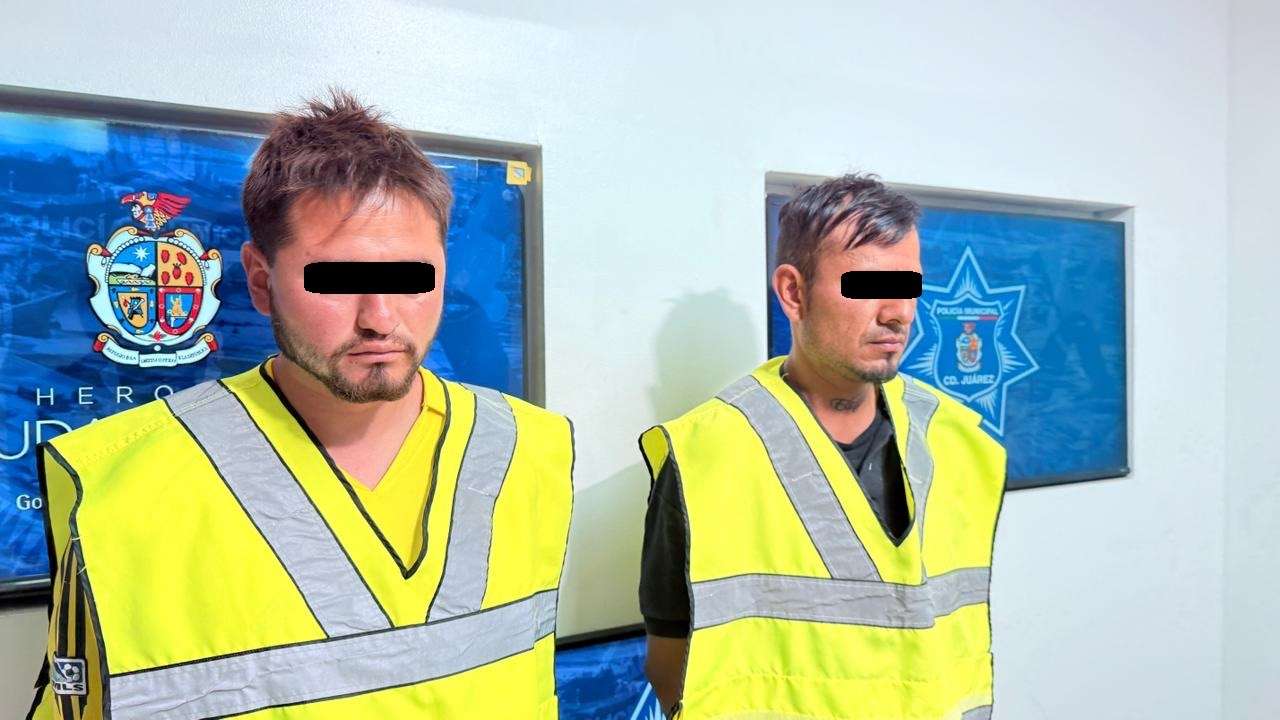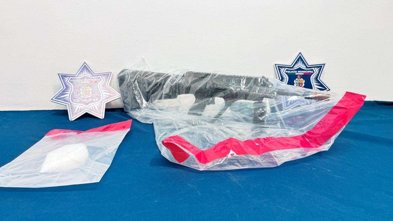 Ciudad Juárez.- Elementos de la Secretaría de Seguridad Pública Municipal, adscritos a la Estación de Policía del Distrito Riveras, detuvieron a Luis David G. A. y Hugo E. H., por su presunta responsabilidad en la comisión de delitos contra la ley federal de armas de fuego y explosivos, así como delitos contra la salud.