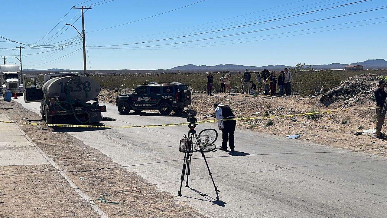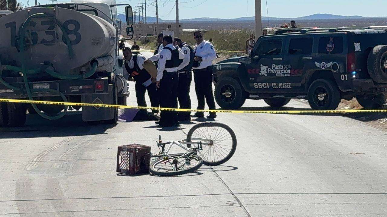 Ciudad Juárez.- Un adulto mayor que viajaba en su bicicleta fue atripellado por una pipa de la JMAS en el Kilómetro 27.