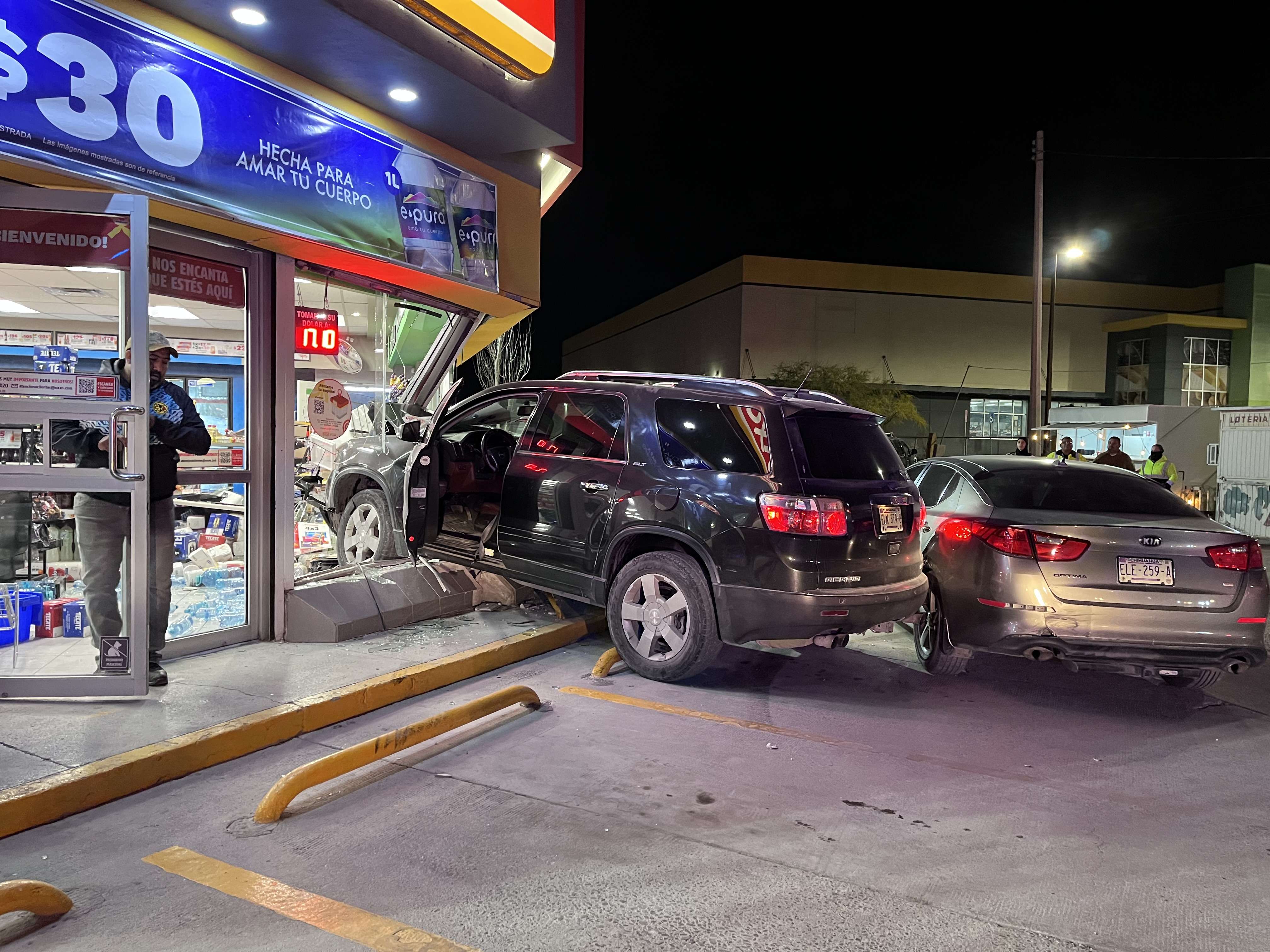 Esto provocó que se impactara contra un automóvil Kia propiedad de un empleado que se encontraba estacionado en el exterior del Oxxo. Tras el fuerte choque, la camioneta terminó en el interior de la tienda de conveniencia, causando daños tanto al establecimiento como al vehículo afectado.