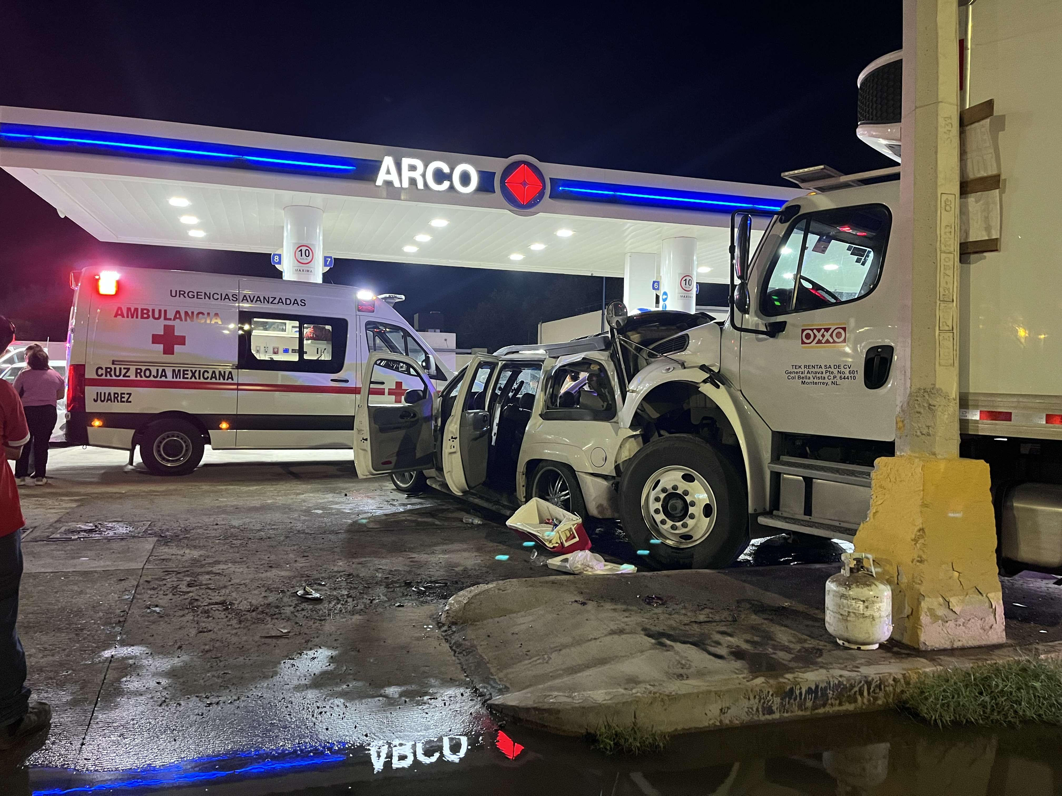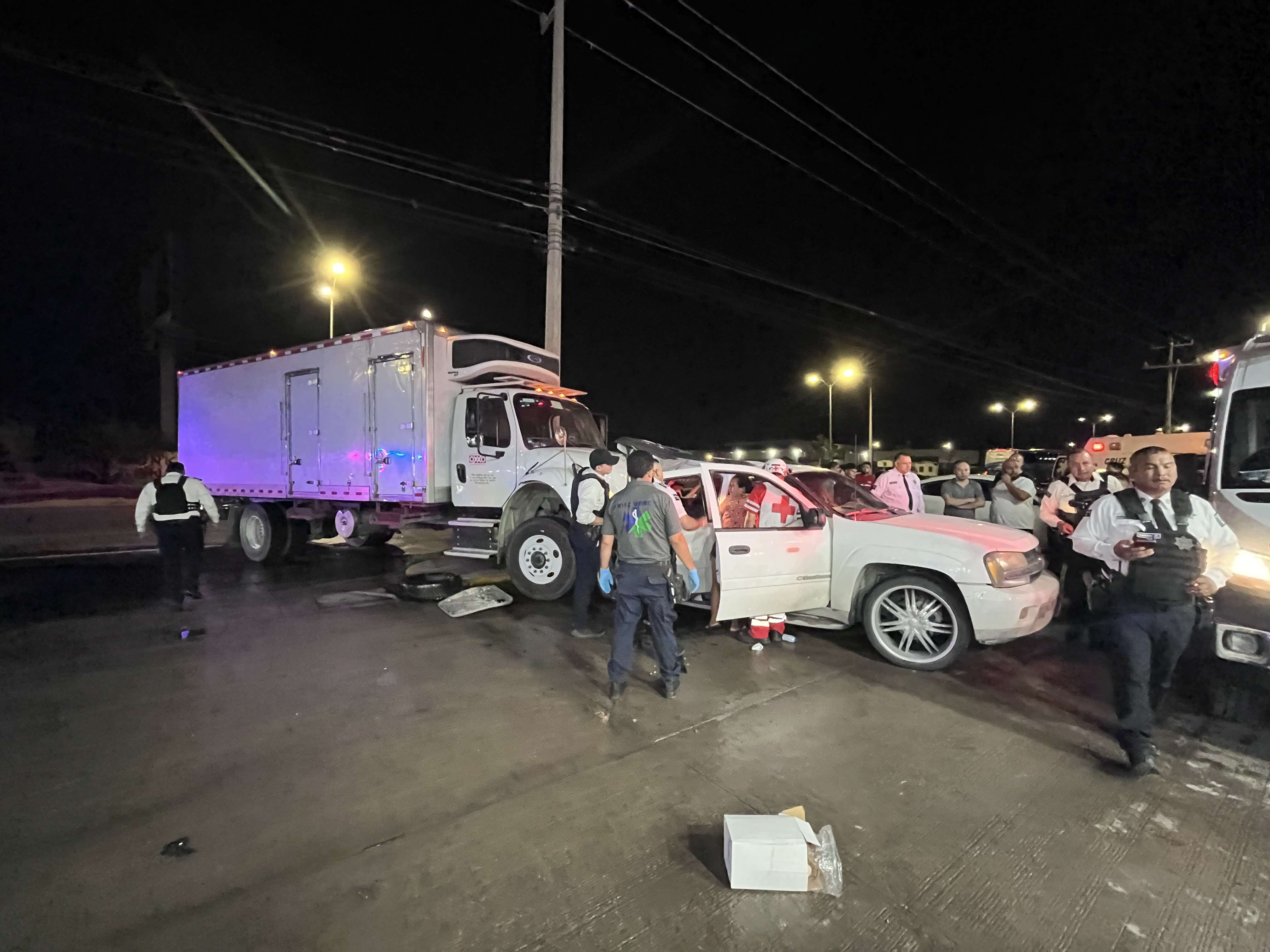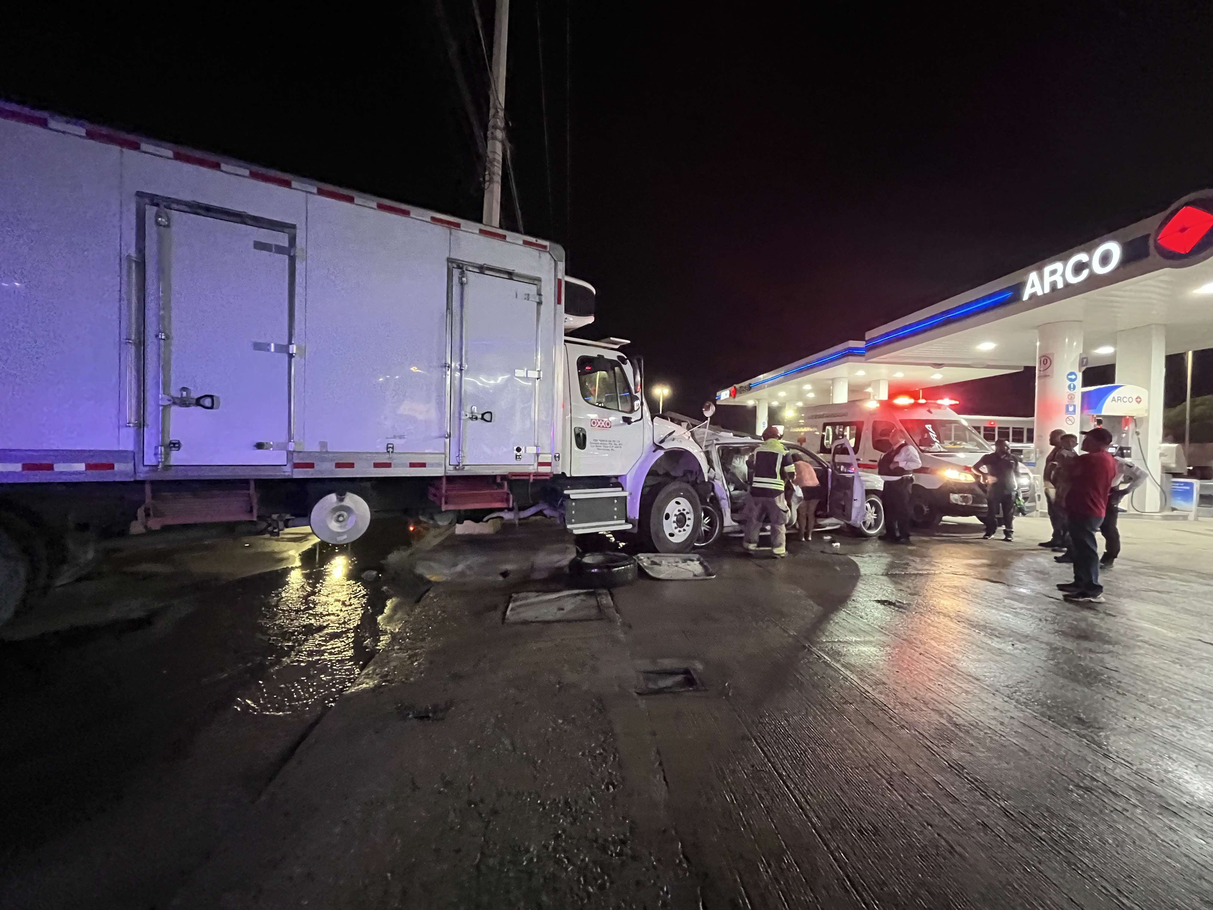 El percance ocurrió sobre la carretera Panamericana, en el cruce con la calle Eduardo Vidal Loya, donde según los primeros reportes, el conductor de la camioneta intentó girar hacia una estación de gasolina, momento en el que fue impactado por la parte trasera por el camión de carga.