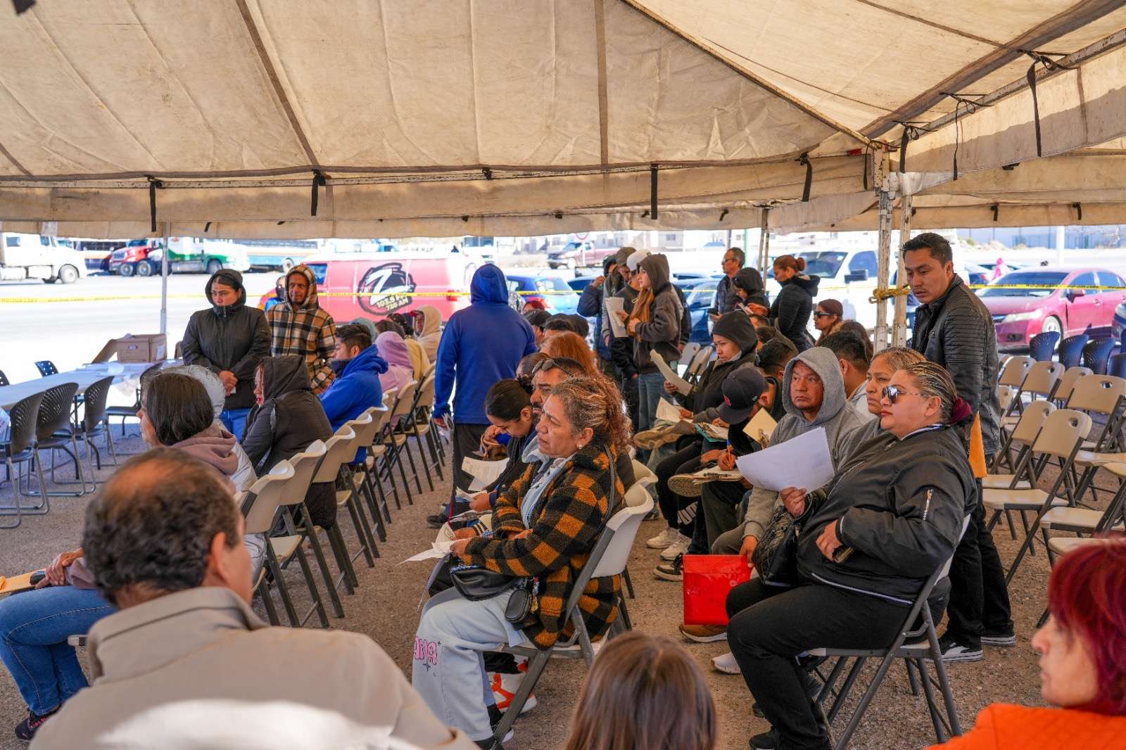 Ciudad Juárez.- La Junta de Agua y Saneamiento de Juárez, acercó este sábado sus servicios al estacionamiento de Soriana Porvenir, facilitando a los usuarios la oportunidad de regularizar sus cuentas, sin necesidad de acudir entre semana a oficinas.