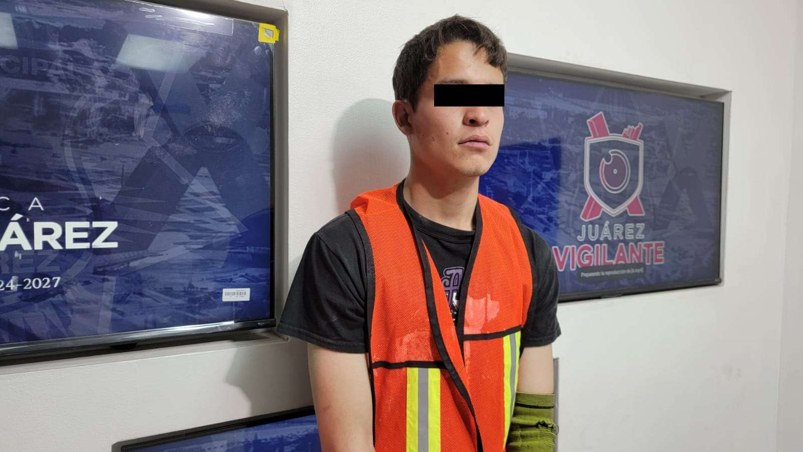 Ciudad Juárez.- Elementos de la Secretaría de Seguridad Pública Municipal, adscritos al Distrito Universidad, arrestaron a Juan Manuel P. T., por su presunta responsabilidad en la comisión del delito de homicidio.