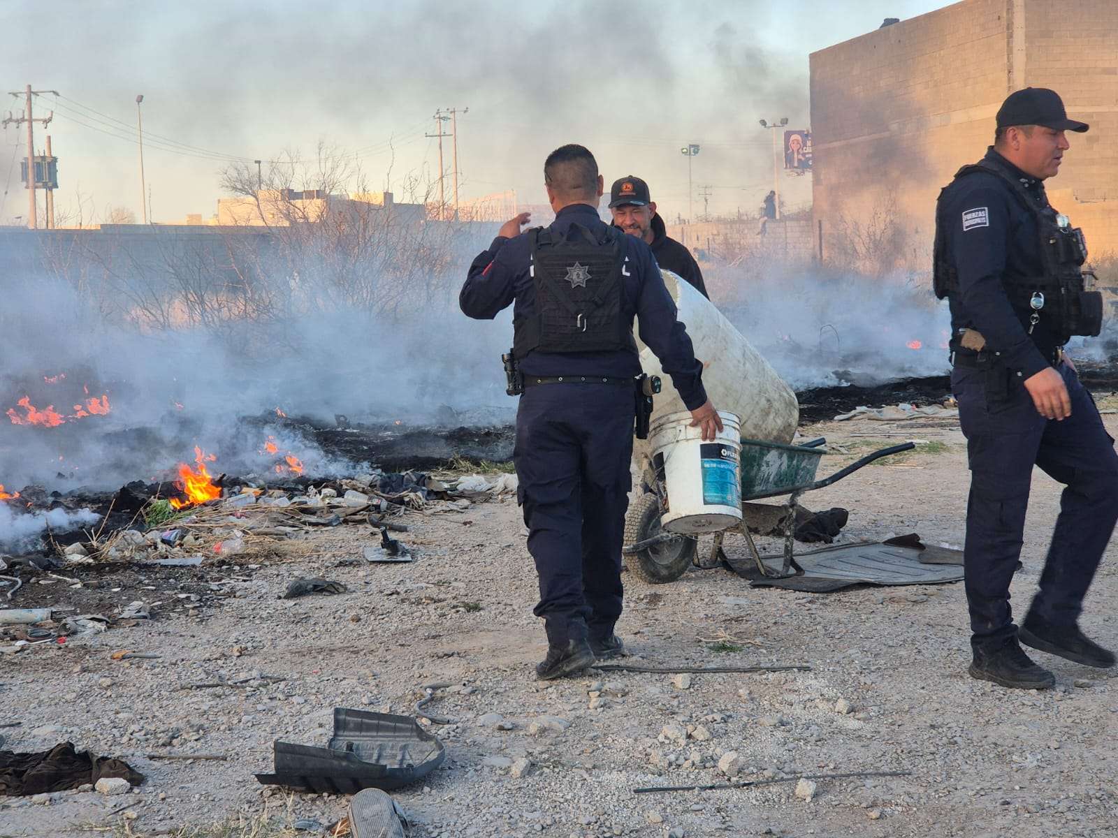 Ciudad Juárez -. Elementos de la Secretaría de Seguridad Pública Municipal, adscritos al Distrito Sur, atendieron de manera oportuna el reporte de un incendio registrado en un lote baldío de la colonia Educación, mismo que fue sofocado sin que se reportaran personas lesionadas.