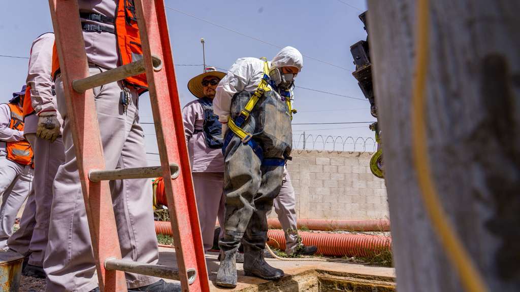 “Son trajes que se usan cuando van a trabajar en espacios confinados. Estos trajes se usan desde que tenemos áreas donde hay que meter personal para realizar limpieza, los trajes blancos son de uso desechable. Lo utilizan para las acciones de limpieza del drenaje, pero también lo usamos en los departamentos de agua potable y lo utiliza, extracción y distribución”, explicó Corona.