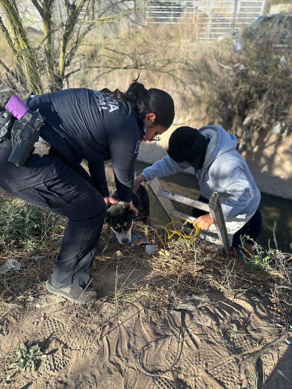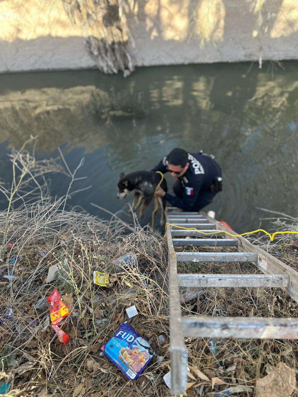 Ciudad Juárez -. Elementos de la Secretaría de Seguridad Pública Municipal, adscritos a la Estación de Policía del Distrito Centro, brindaron apoyo en el rescate de un perro que se encontraba atrapado en un canal de aguas negras, en hechos registrados en la colonia Bellavista.