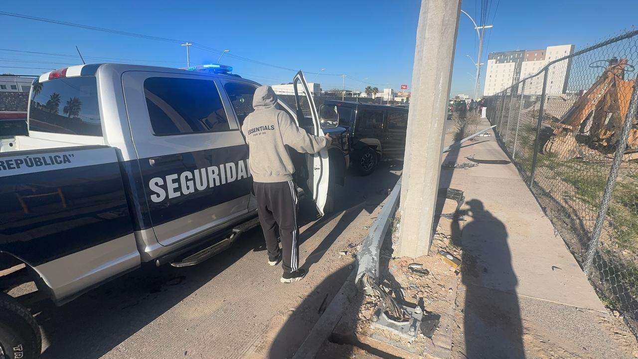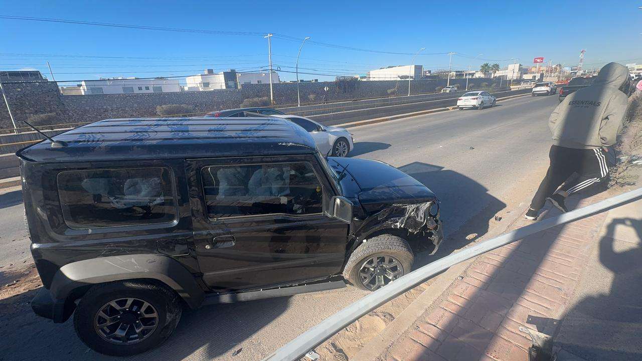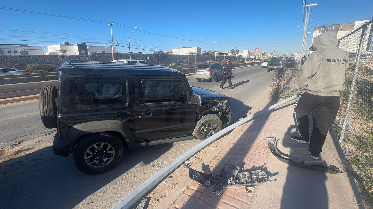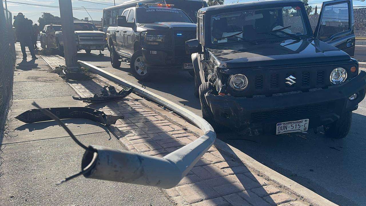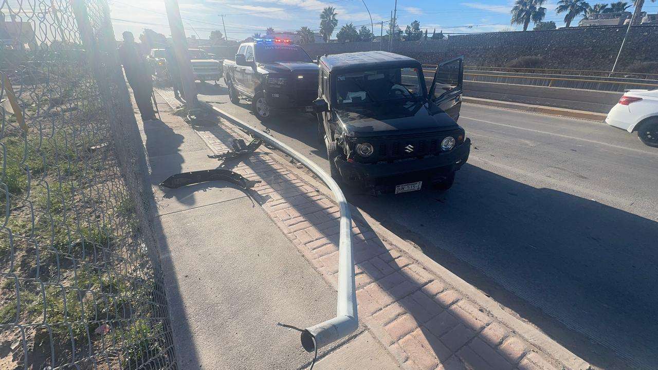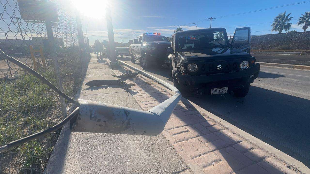 Autoridades de Vialidad informaron que un Jeep negro invadió carril y se impactó con una camioneta Ford 150 lo que provocó que chocará con un arbotante y se volcara.