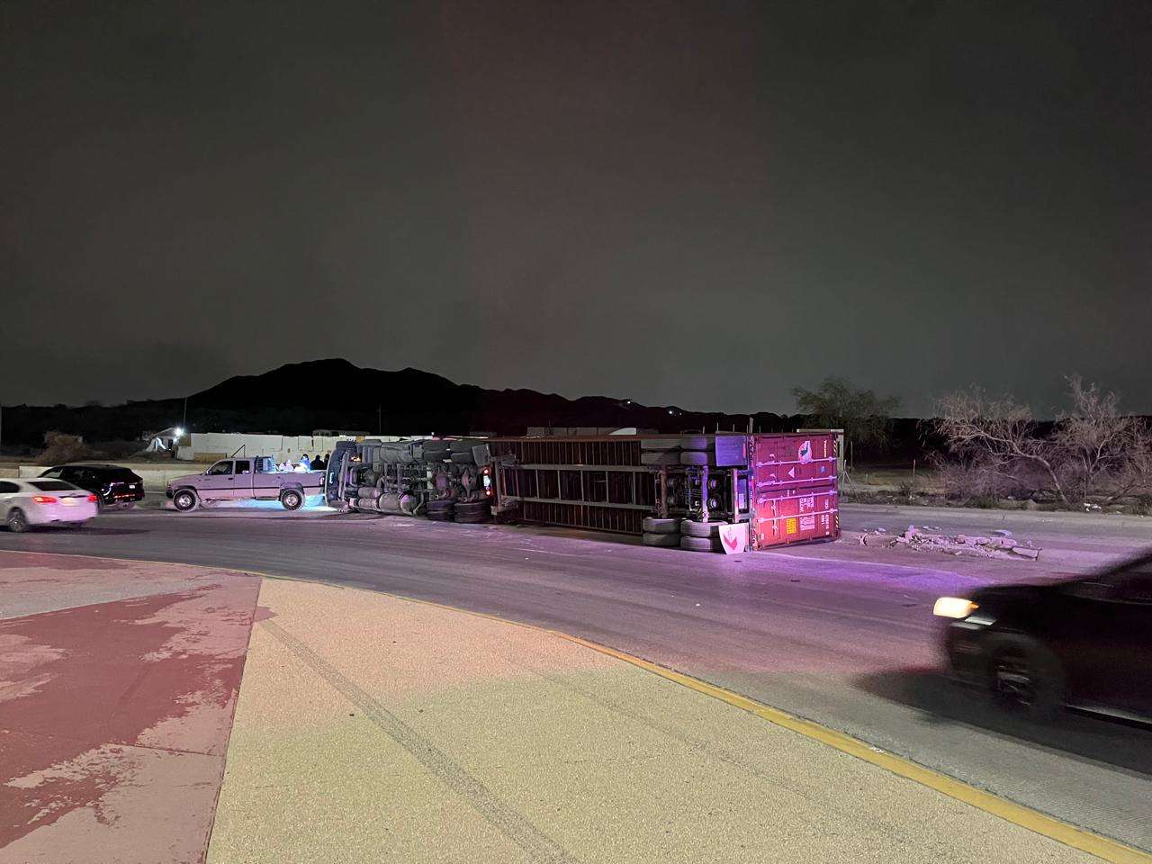 De acuerdo con los primeros reportes, el tractocamión circulaba procedente del área de Santa Teresa sobre la avenida Rancho Anapra y, al tomar la curva de la glorieta, el peso de la carga le ganó al conductor, lo que ocasionó que la unidad se volcara sobre su costado derecho.